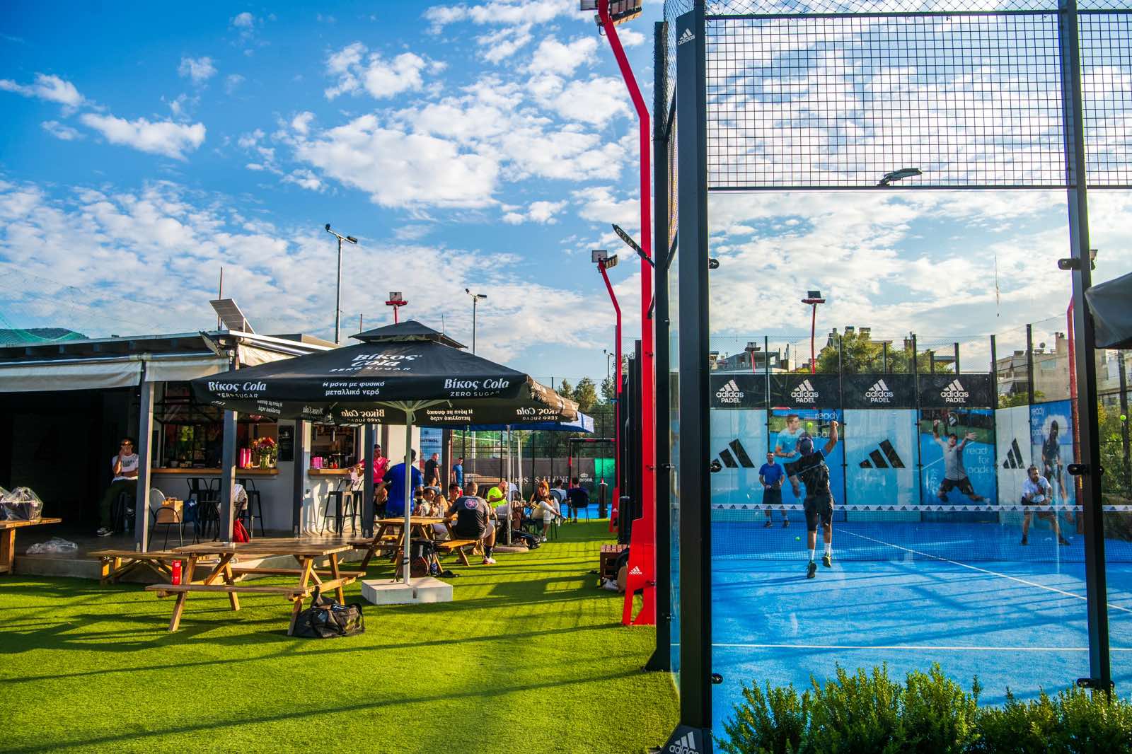 4 Sports Club is a dream came true. It is a new sports and hospitality space for all ages, located in Chalandri. The facility includes 4 beach volleyball courts, 2 padel courts, an outdoor gym, changing rooms, and a café.