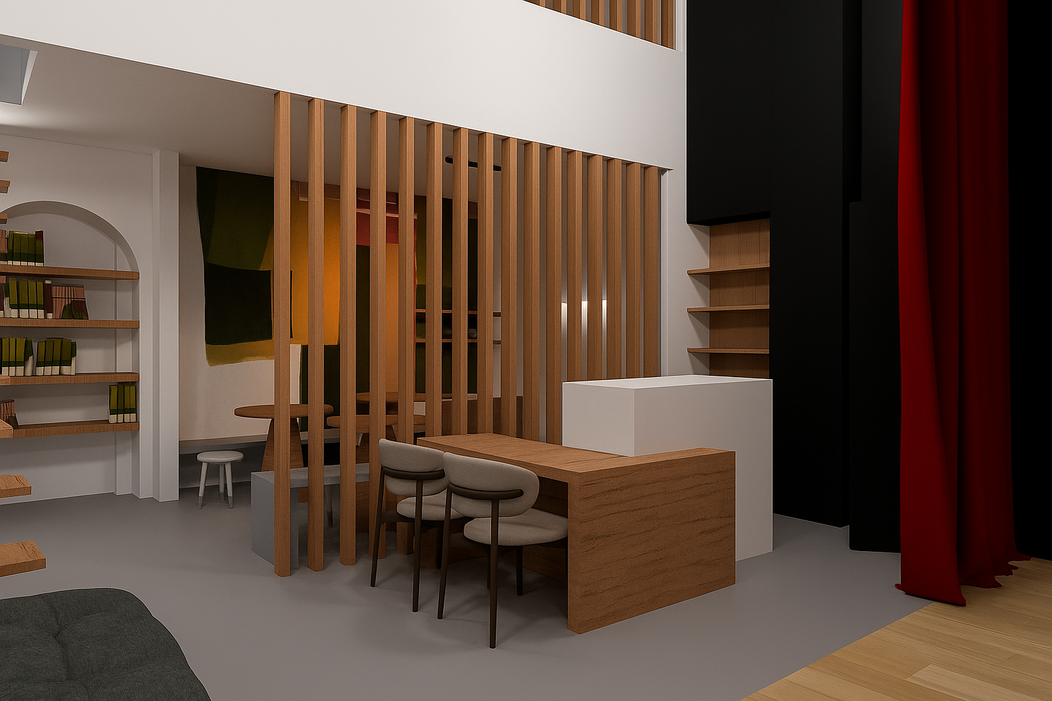 Additionally, we wanted to renovate the entire workshop and create more storage spaces, as well as a dressing room with an area where they can change clothes.