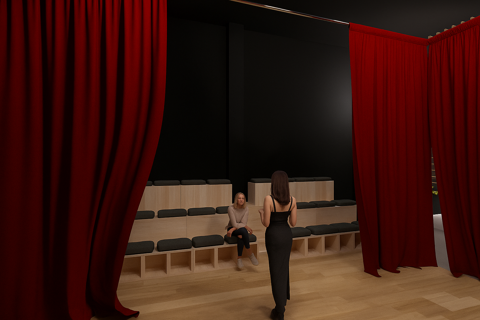 The requirement was to create a seating area for at least 30 spectators and a break area for the students where they can eat.